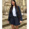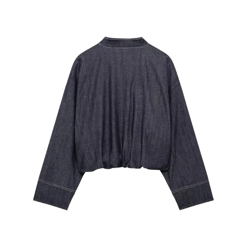 Deze denim bomberjas heeft een minimalistische en moderne uitstraling. De rechte snit met rits aan de voorkant en subtiele stiksels geeft de jas een clean en tijdloos karakter. Het model is licht en ideaal voor het voorjaar en de zomer.