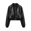Deze zwarte bomberjas in faux leer geeft je outfit een stoere en moderne uitstraling. De glanzende finish en de korte pasvorm zorgen voor een trendy look. Met zijn rits aan de voorkant en twee schuine zakken is deze jas zowel praktisch als stijlvol.