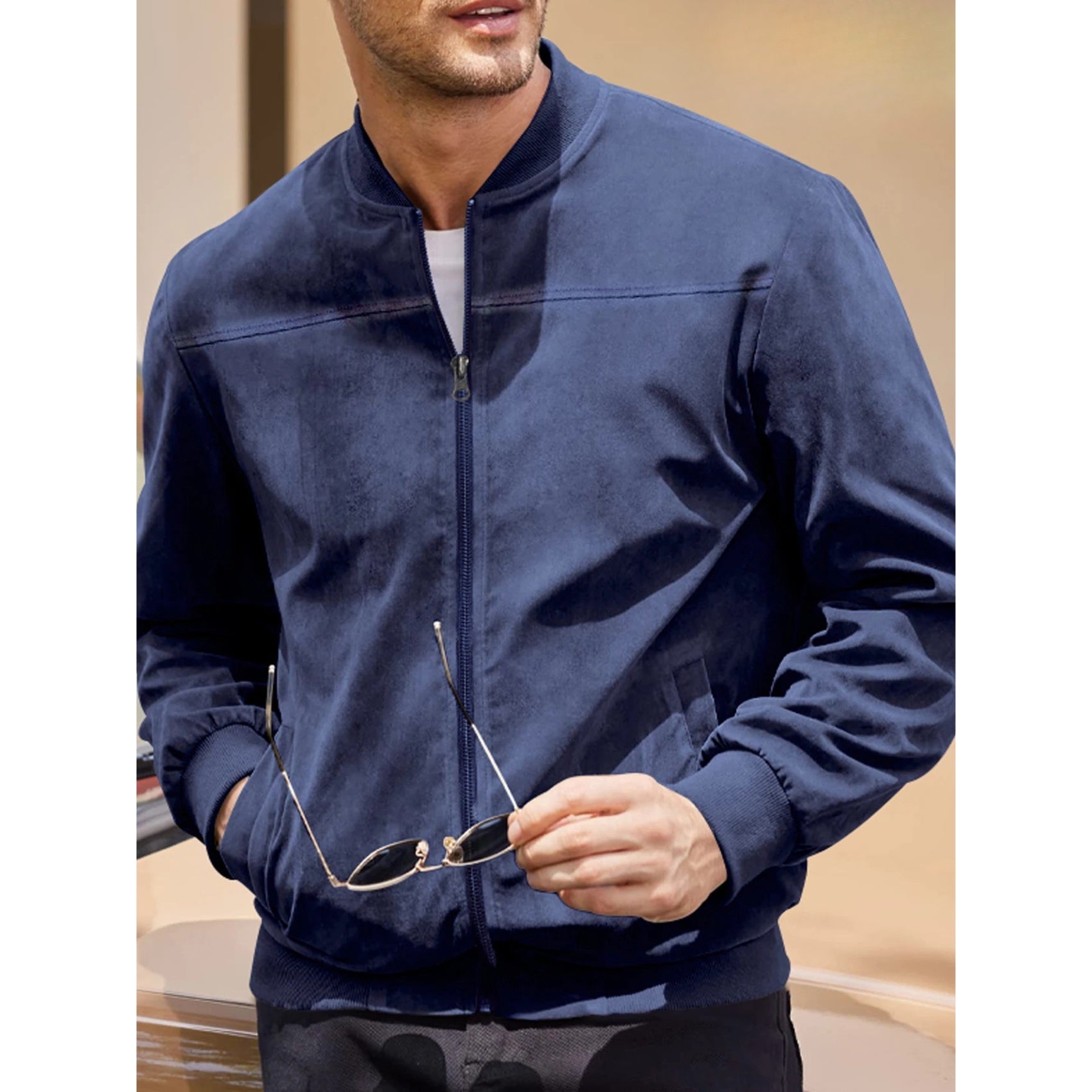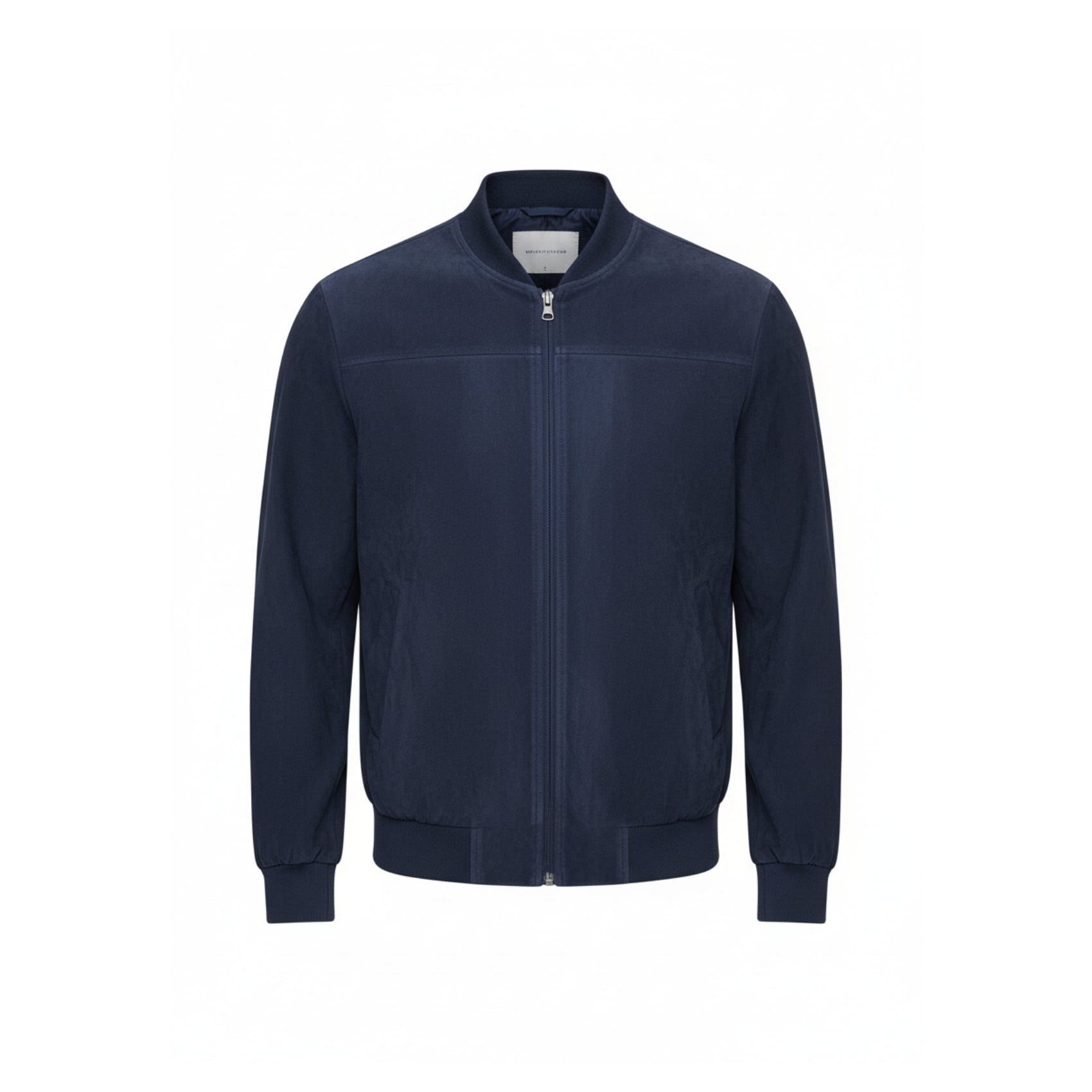 Blauwe bomberjack met een zachte suède-look die zorgt voor een elegante en moderne uitstraling. Het lichte en losse ontwerp biedt veel draagcomfort.