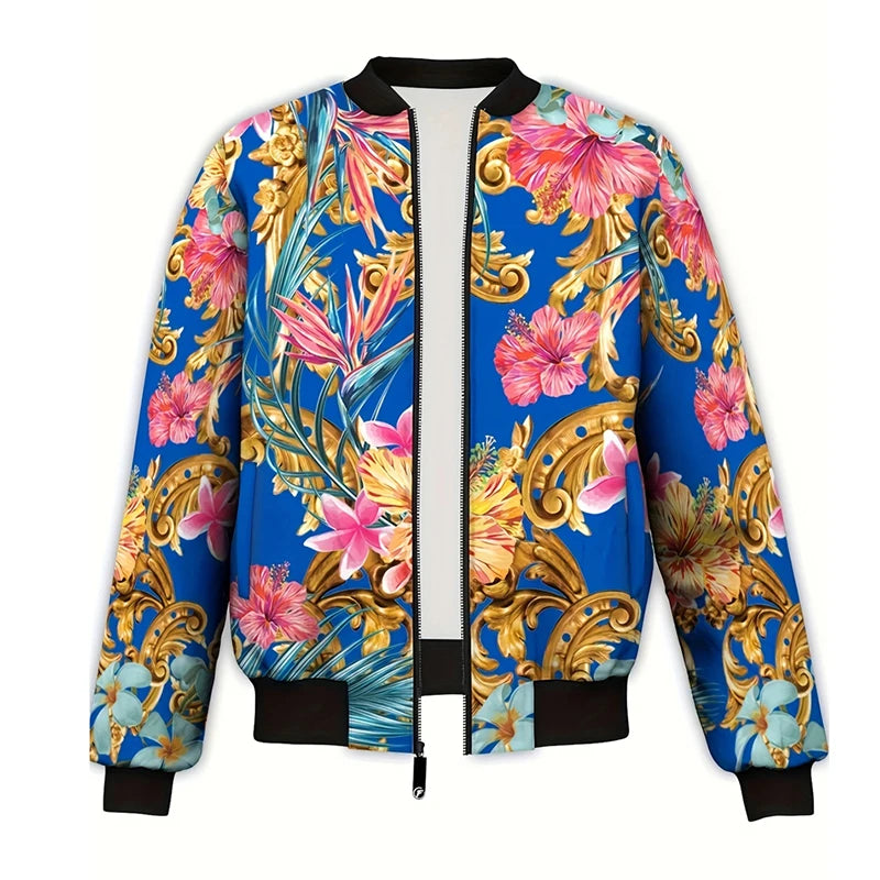 Dit bomberjack valt op door zijn levendige bloemen en bladmotief en geeft elke outfit een speelse en stijlvolle uitstraling. Een ideaal statement piece voor wie houdt van kleur en originaliteit.