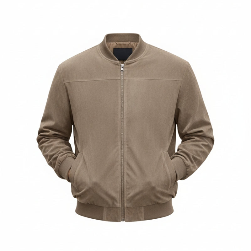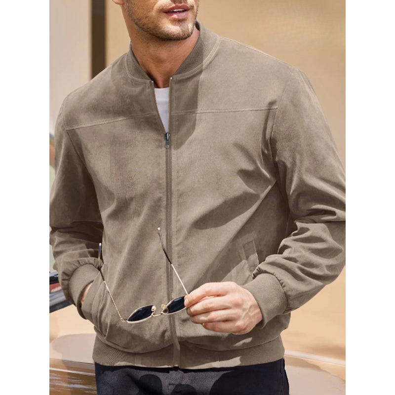 Bomberjack met een zachte suède-look die direct een stijlvolle en moderne uitstraling geeft. Het lichte en losse ontwerp zorgt voor optimaal draagcomfort, ideaal voor casual lente en herfstdagen. Voorzien van een rechte rits en subtiele zijzakken voor een strakke afwerking.