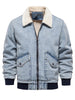 Denim bomberjack met een zachte sherpa kraag en warme voering, ideaal voor koude herfst en winterdagen. De jas heeft grote voorzakken met drukknopen en geribde boorden voor een comfortabele pasvorm. Perfect om een casual en stoere look te creëren.