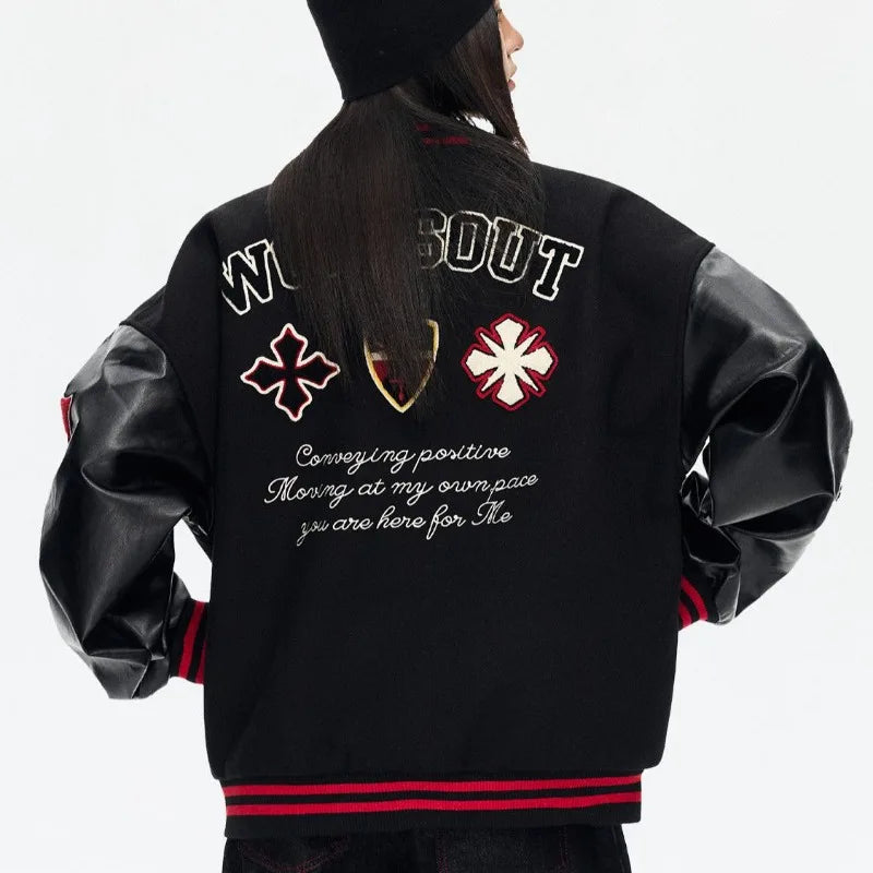 Deze varsity jacket is verkrijgbaar in zwart en wit en heeft opvallende patches en geborduurde details voor een echte college vibe. Perfect om een Y2K-streetwear look te creëren en je outfit een speelse twist te geven.