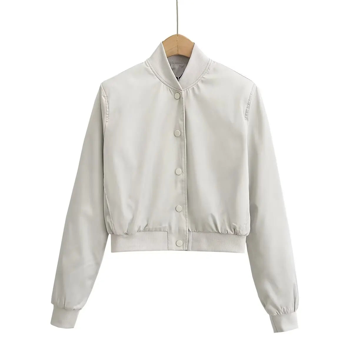 Deze minimalistische bomberjack is een echte must-have voor liefhebbers van een clean en casual look. Verkrijgbaar in wit en zwart, met een korte, rechte pasvorm en knoopsluiting die zorgt voor een strakke en moderne uitstraling.