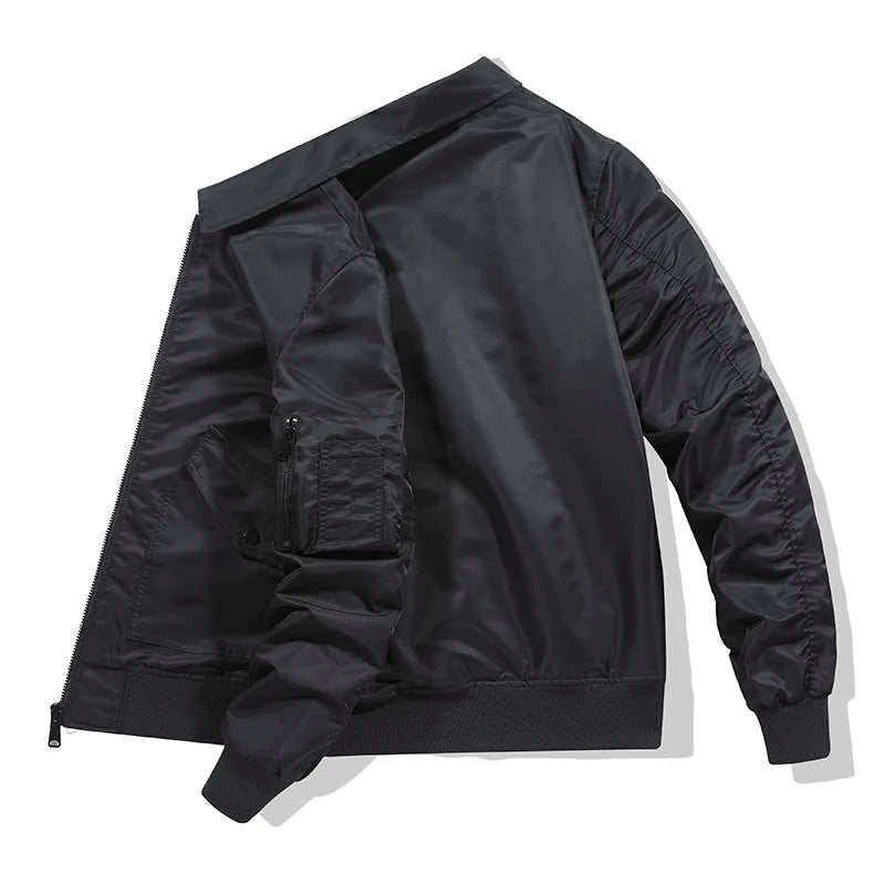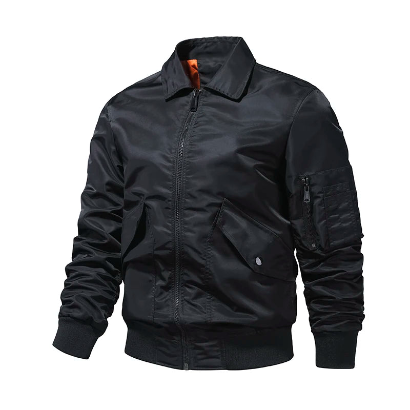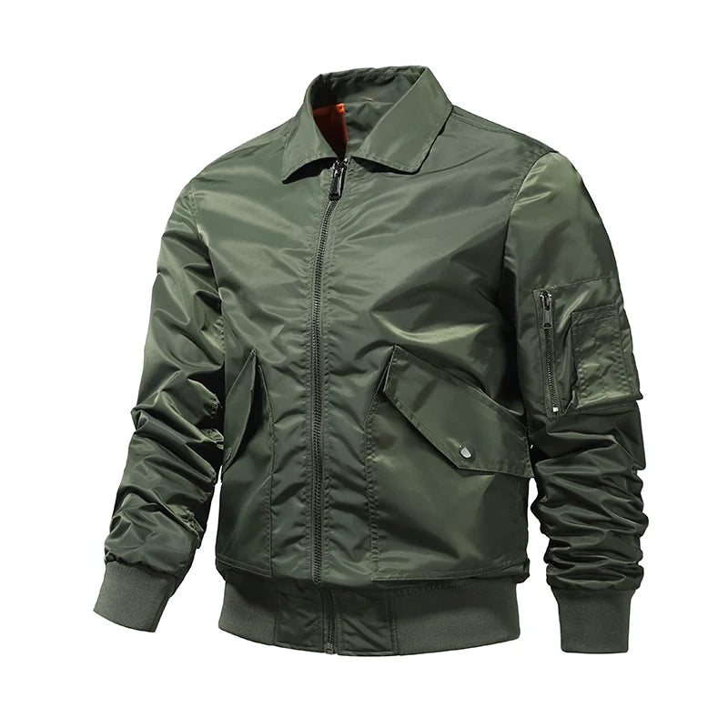 Voeg een stoere en functionele touch toe aan je outfit met deze groene safari bomberjack. Het lichtgewicht nylon materiaal maakt hem geschikt om het hele jaar door te dragen, terwijl de ruime zakken en turn-down kraag de jas een praktische en tijdloze uitstraling geven.